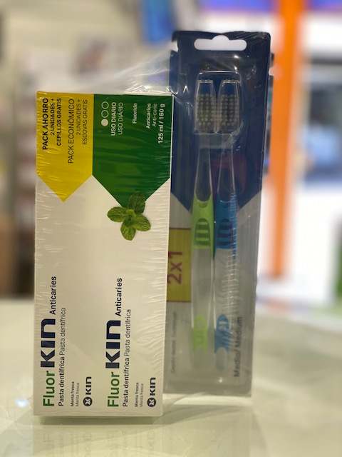 FLUOR KIN ANTICARIES PASTA 2X160ML+2 CEPILLOS DENTALES CN:210116