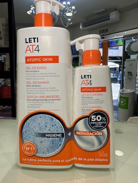 LETI AT4 GEL DE BAÑO 750ML+LECHE CORPORAL 250ML 50% DESCUENTO. CN:182866