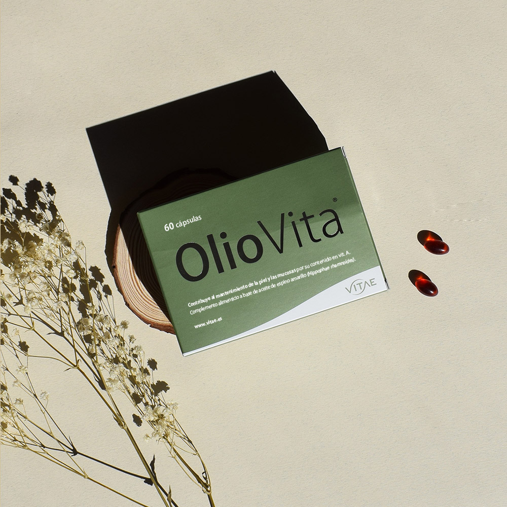 OlioVita es un complemento alimenticio a base de aceite de espino amarillo (Hippophae rhamnoides) de alta calidad, rico en Omega 7, Omega 3, 6 y 9, además de vitaminas naturales A y E que contribuye al mantenimiento de la piel y las mucosas.